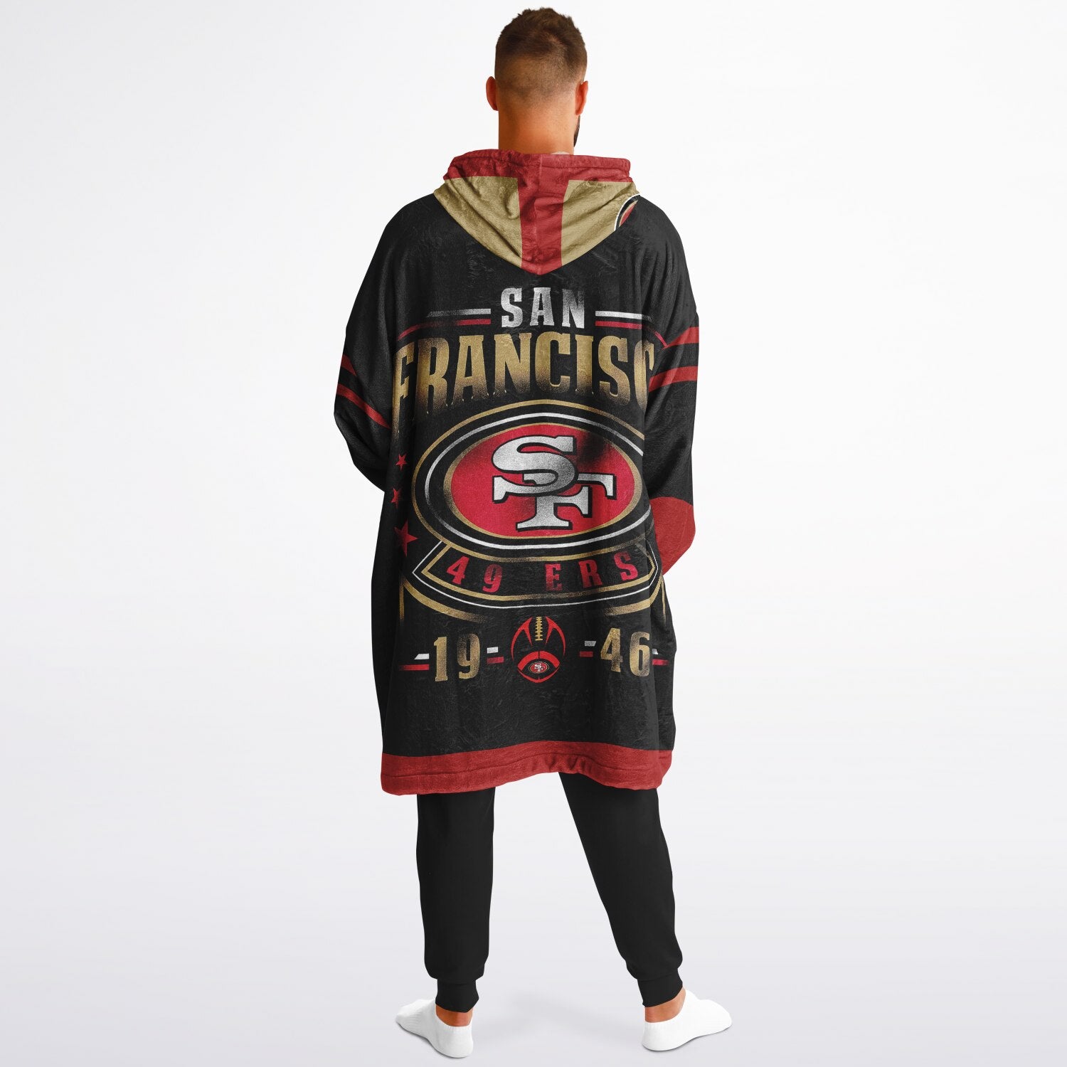 49ers Black Oversize Cuddle Hoodie San Francisco 49ers Cozy Hooded Blanket Gift