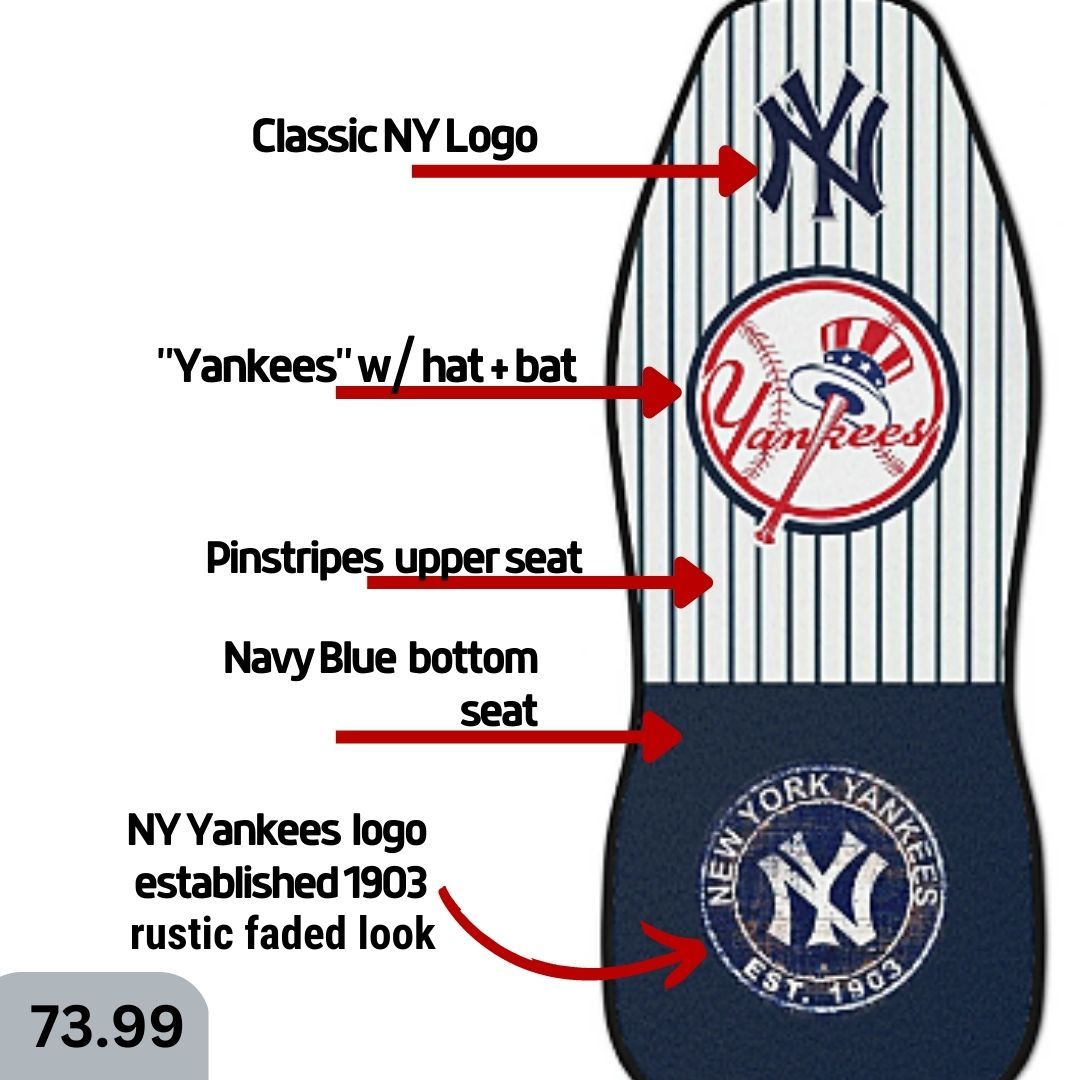 NY Yankees Car Seat Covers NY w/ Striped Back & Navy Seat Vehicle Seat Covers NY Yankees Fan Gift Car Accessories Gift