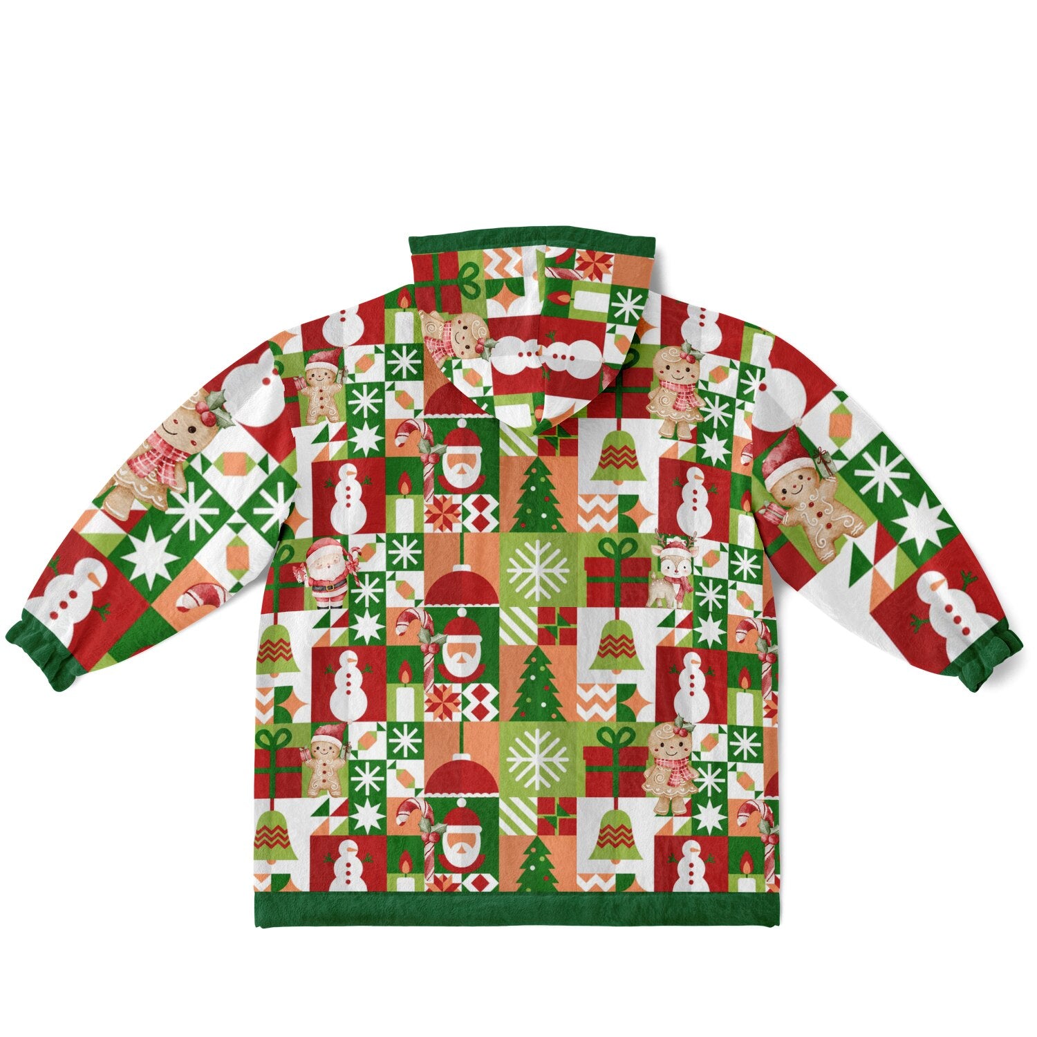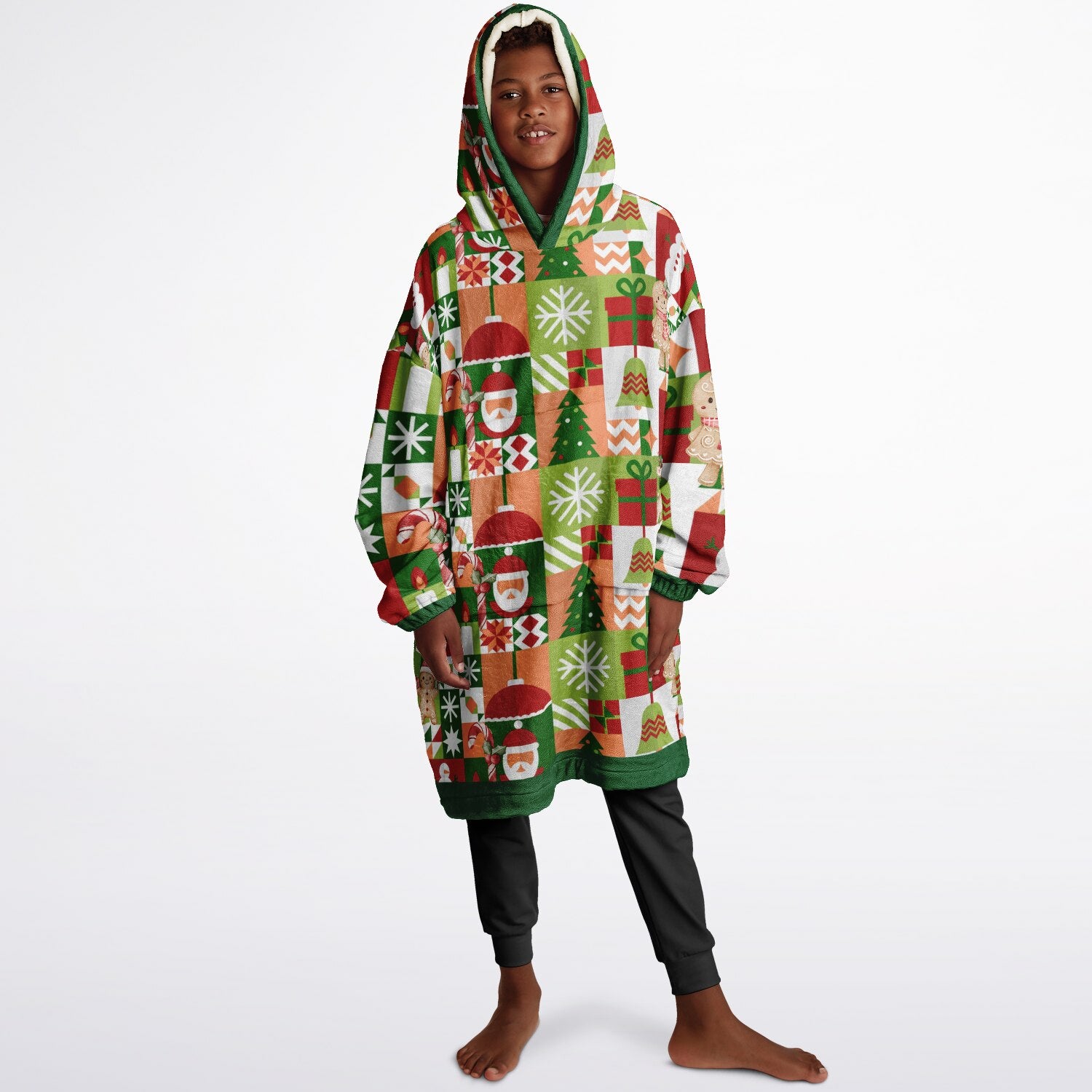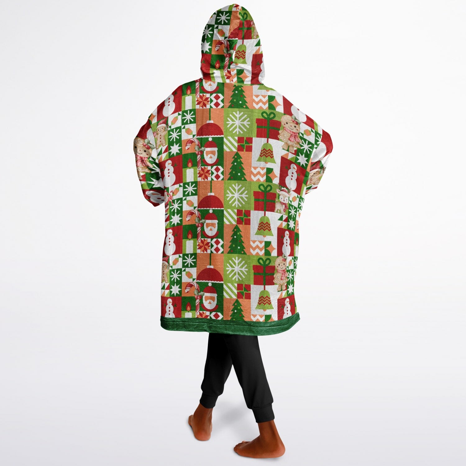 Festive Holiday Christmas Santa Snowman Fun Patchwork Oversize Hooded Blankets Celebrate Festive Christmas Family Fun Adult & Youth Unisex Cozy Gift Plush Flannel SnuggleFit Mini