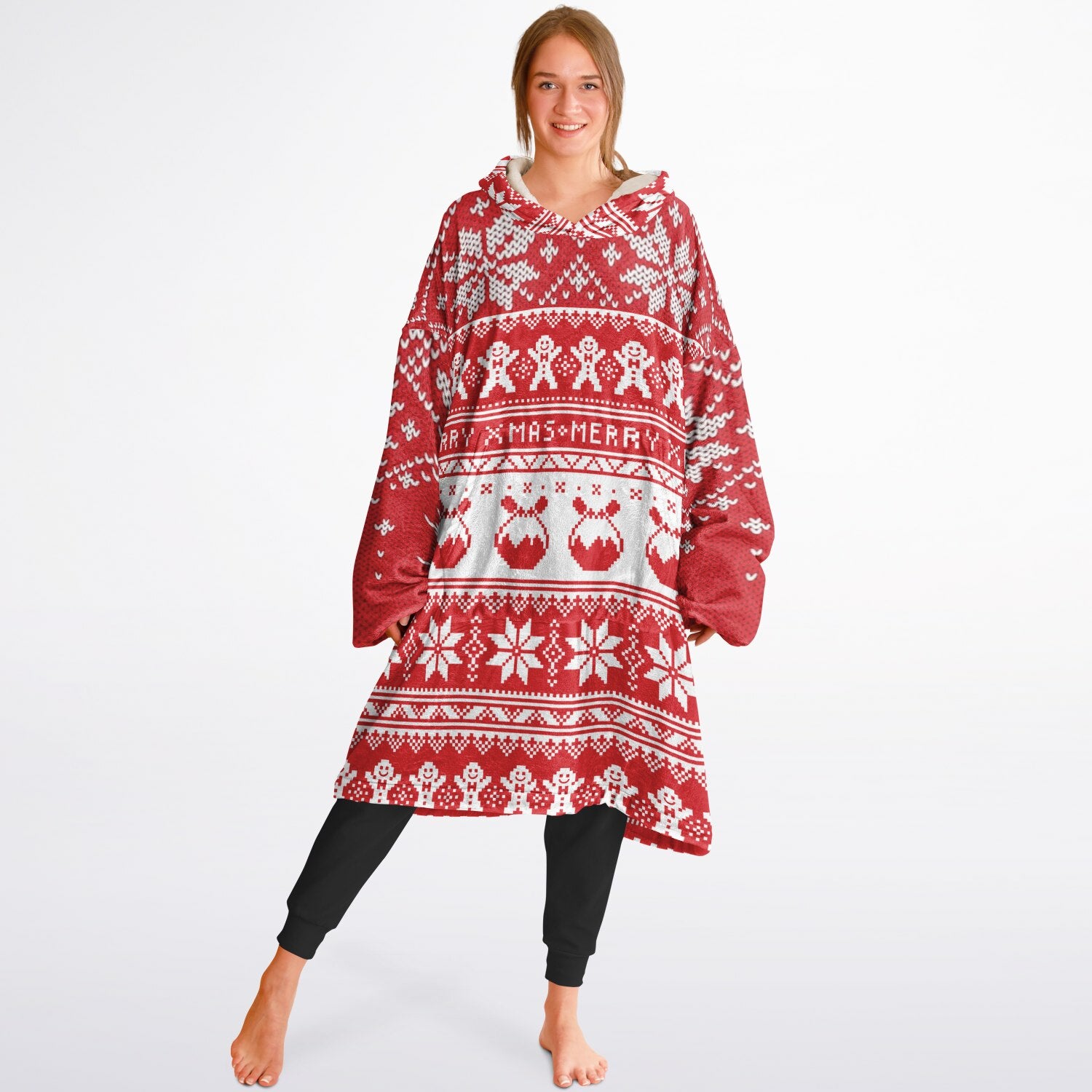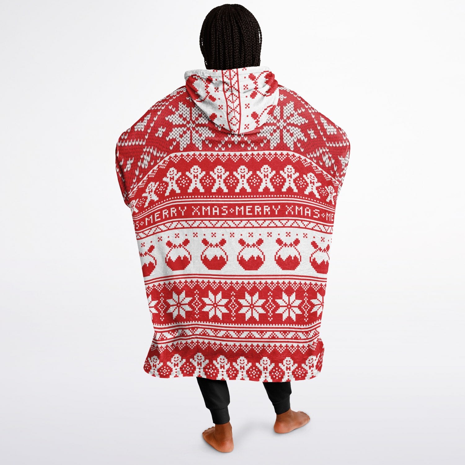 Red Christmas Snowy Happy Oversize Hooded Blanket Fun SnuggleFit